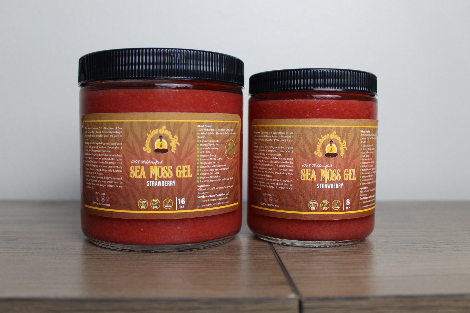 Our Sonshine Sea Moss Gel is thoroughly cleaned made fresh to order and packaged in 8 oz or 16 oz glass jars.